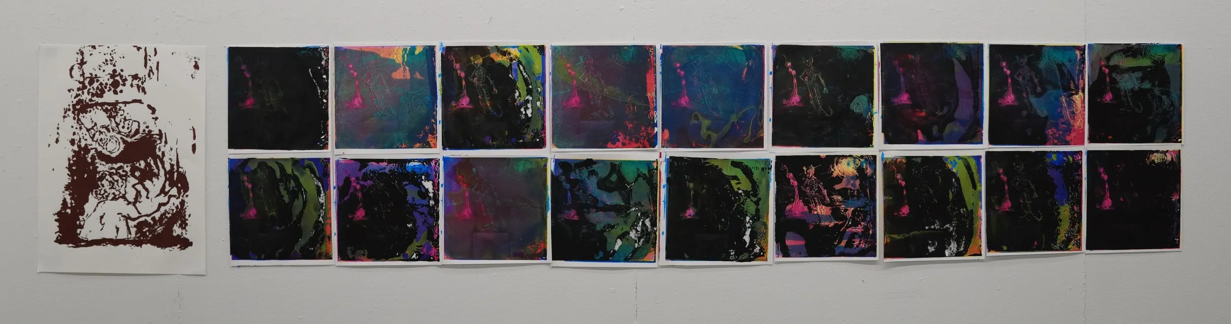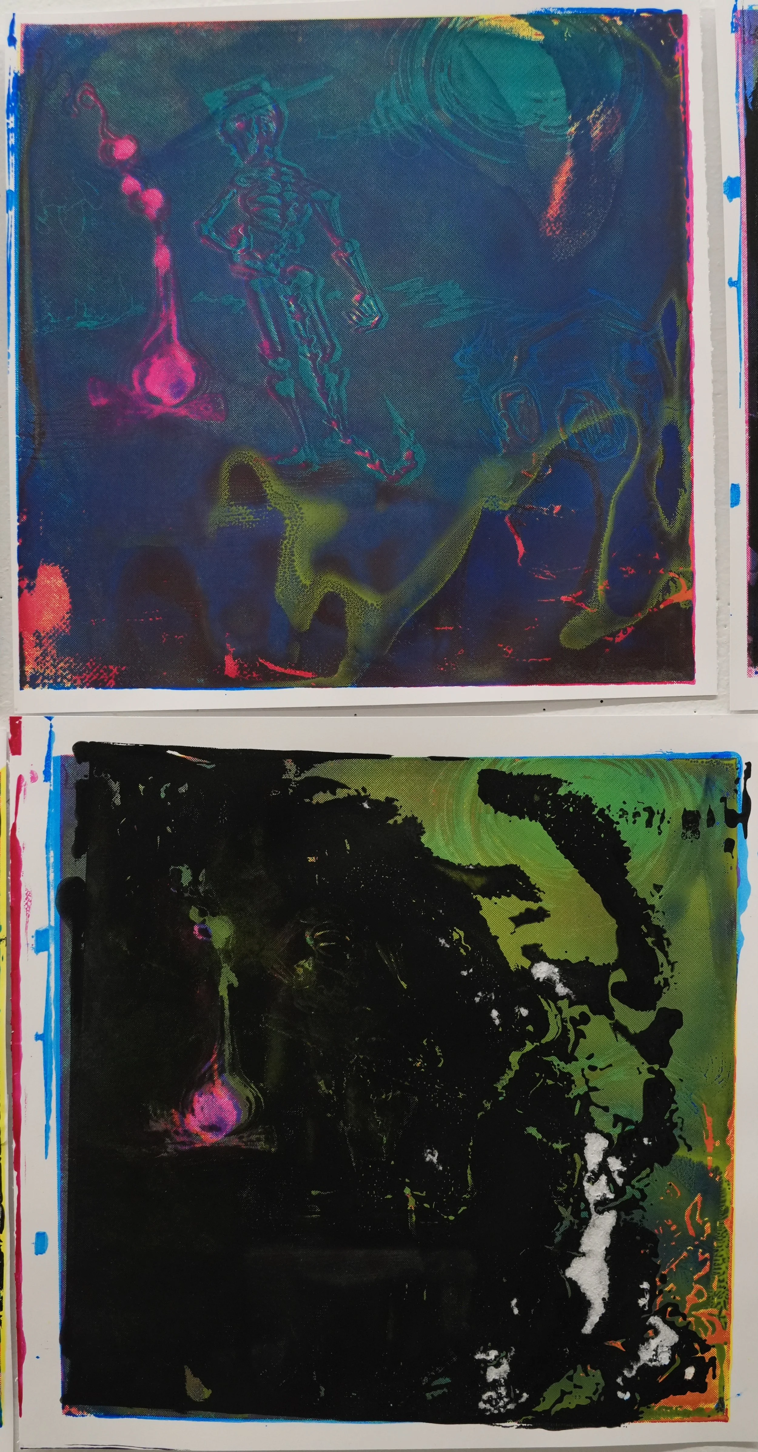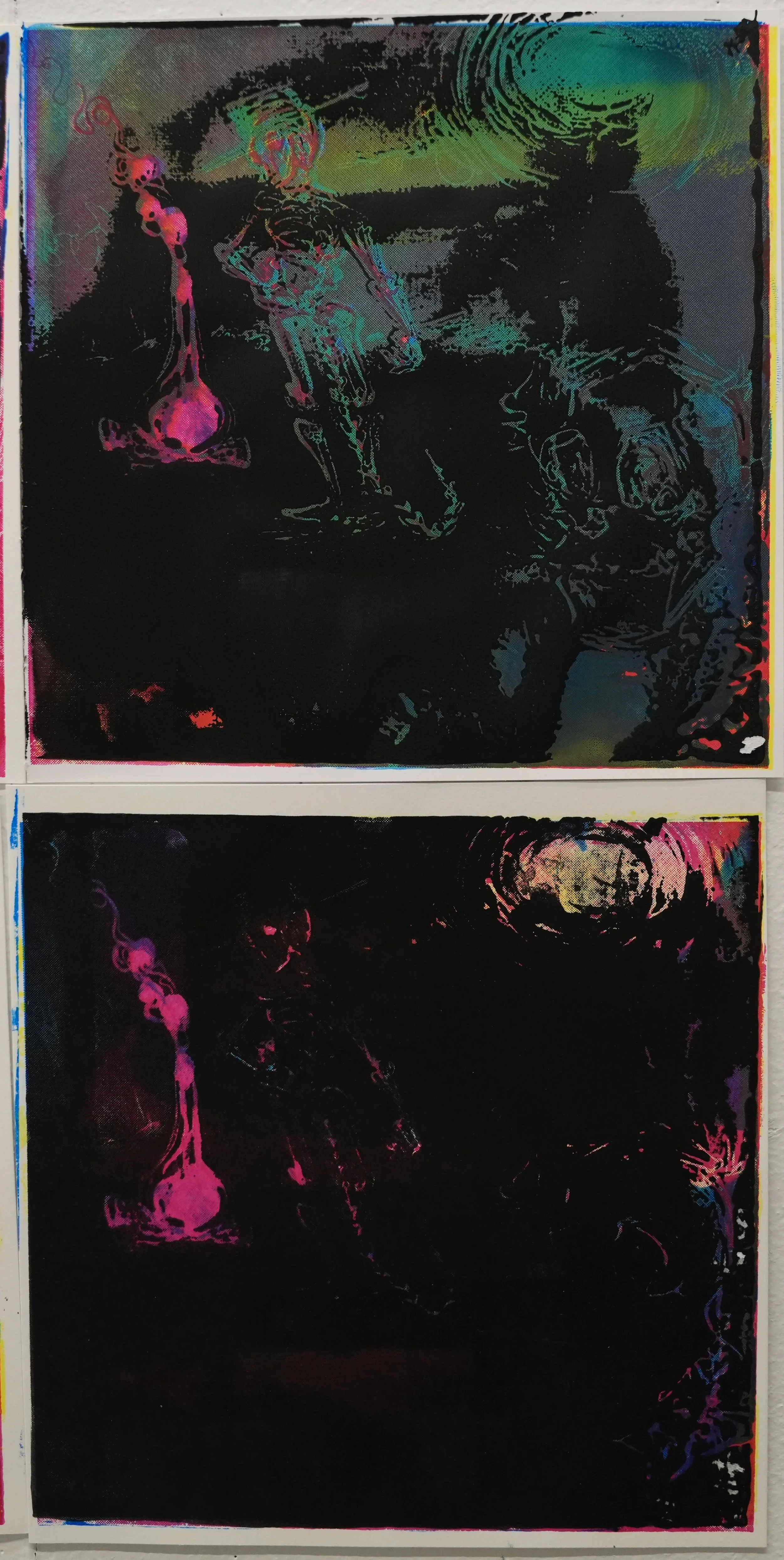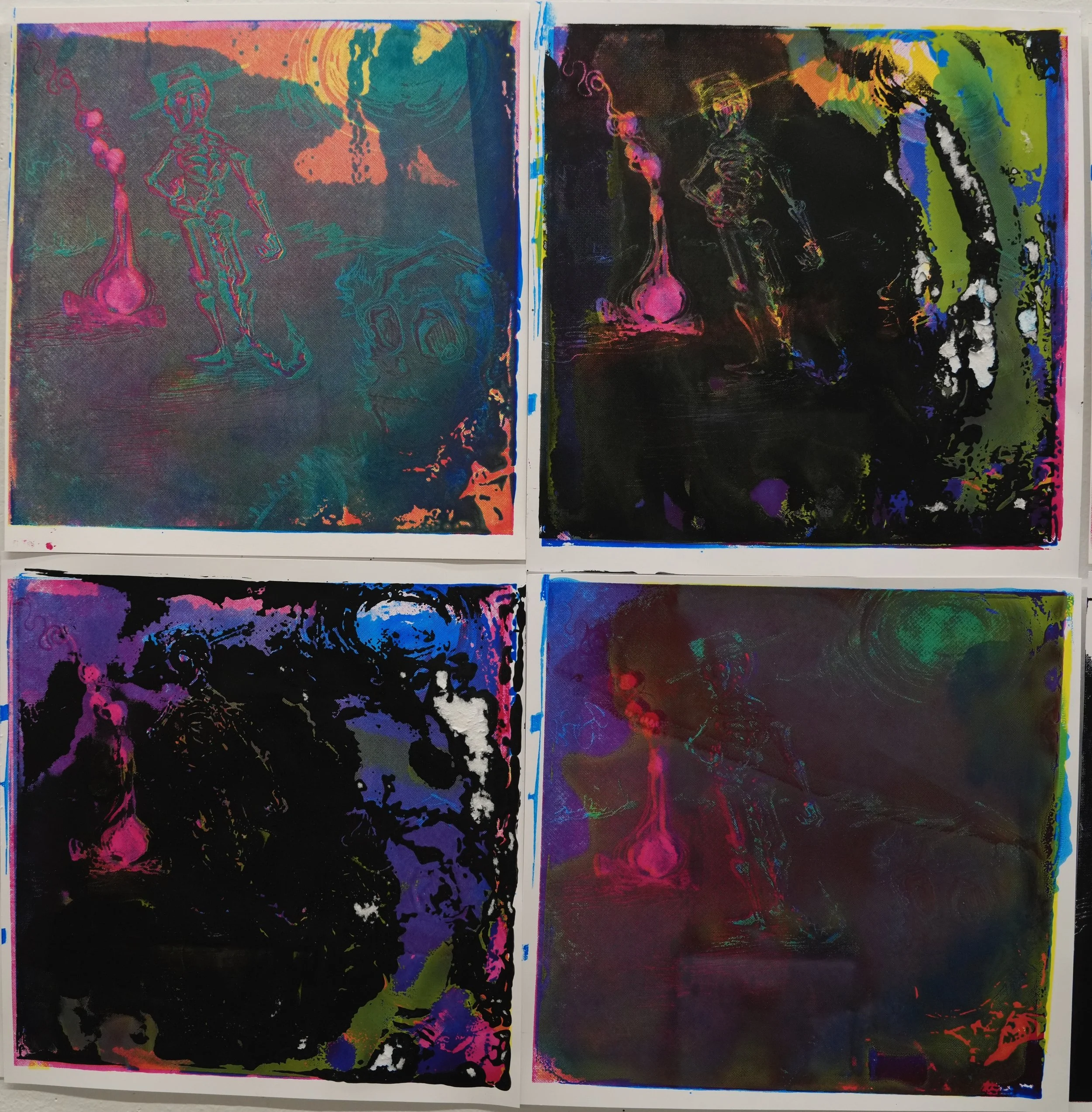 18 CMYK screen prints. 2023. Presented as a final for my 2023 fall print-media class.