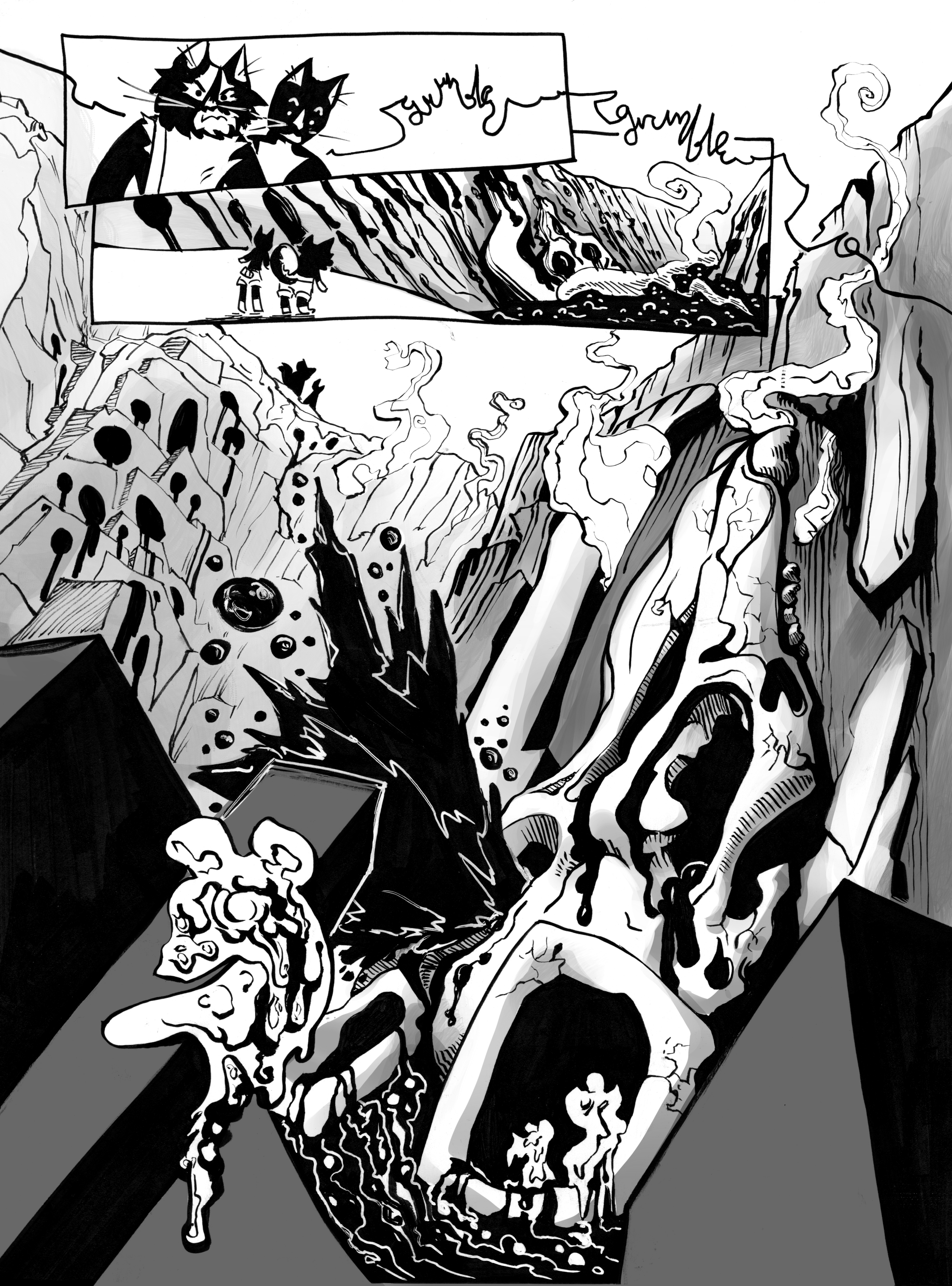 Pouring Rats (32 pages). Second edition. Pen and ink on paper, with digital grayscale. 2024.